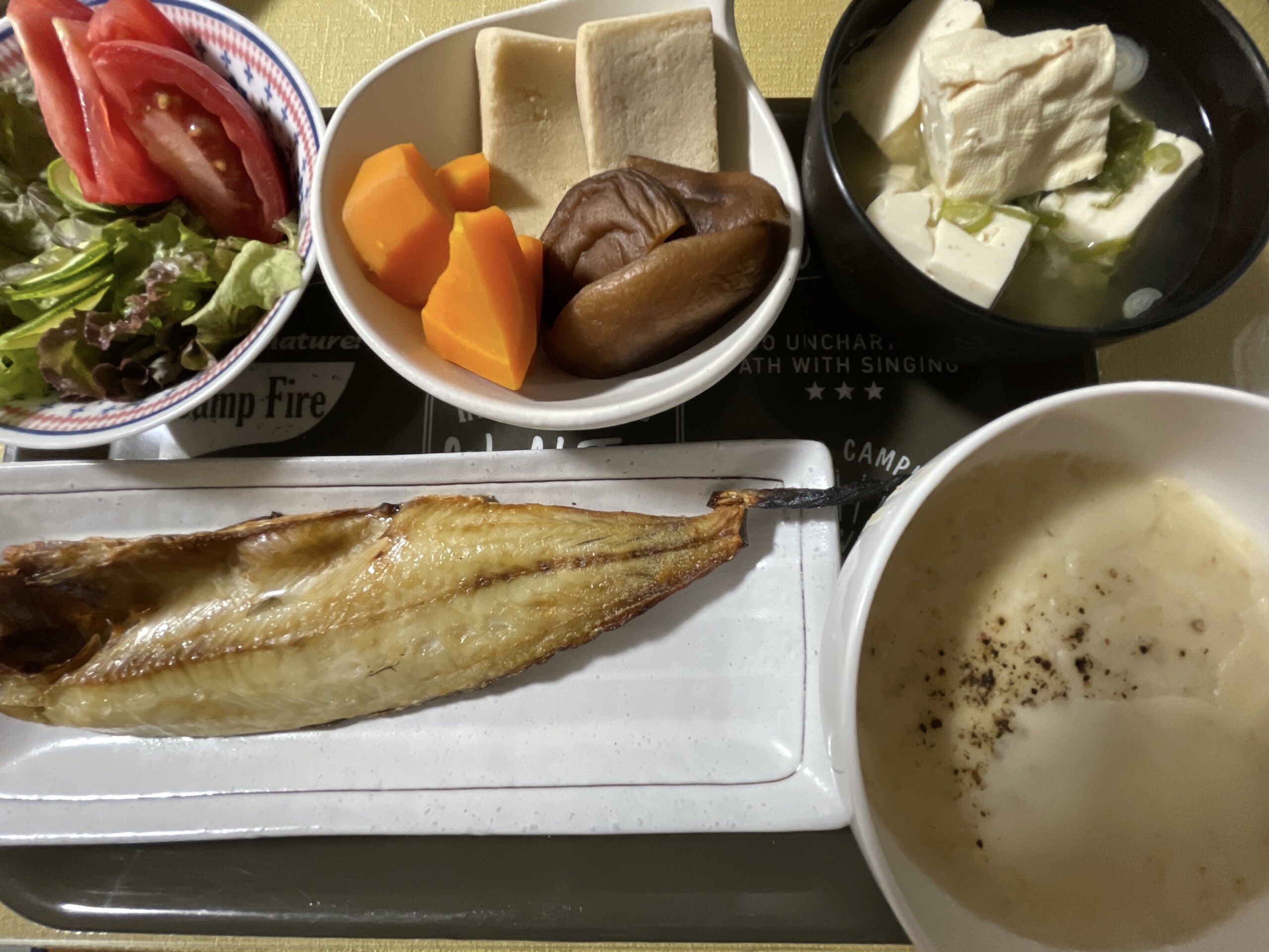 すごくバランスの取れた食事ですね、ほっけおいしそう^^