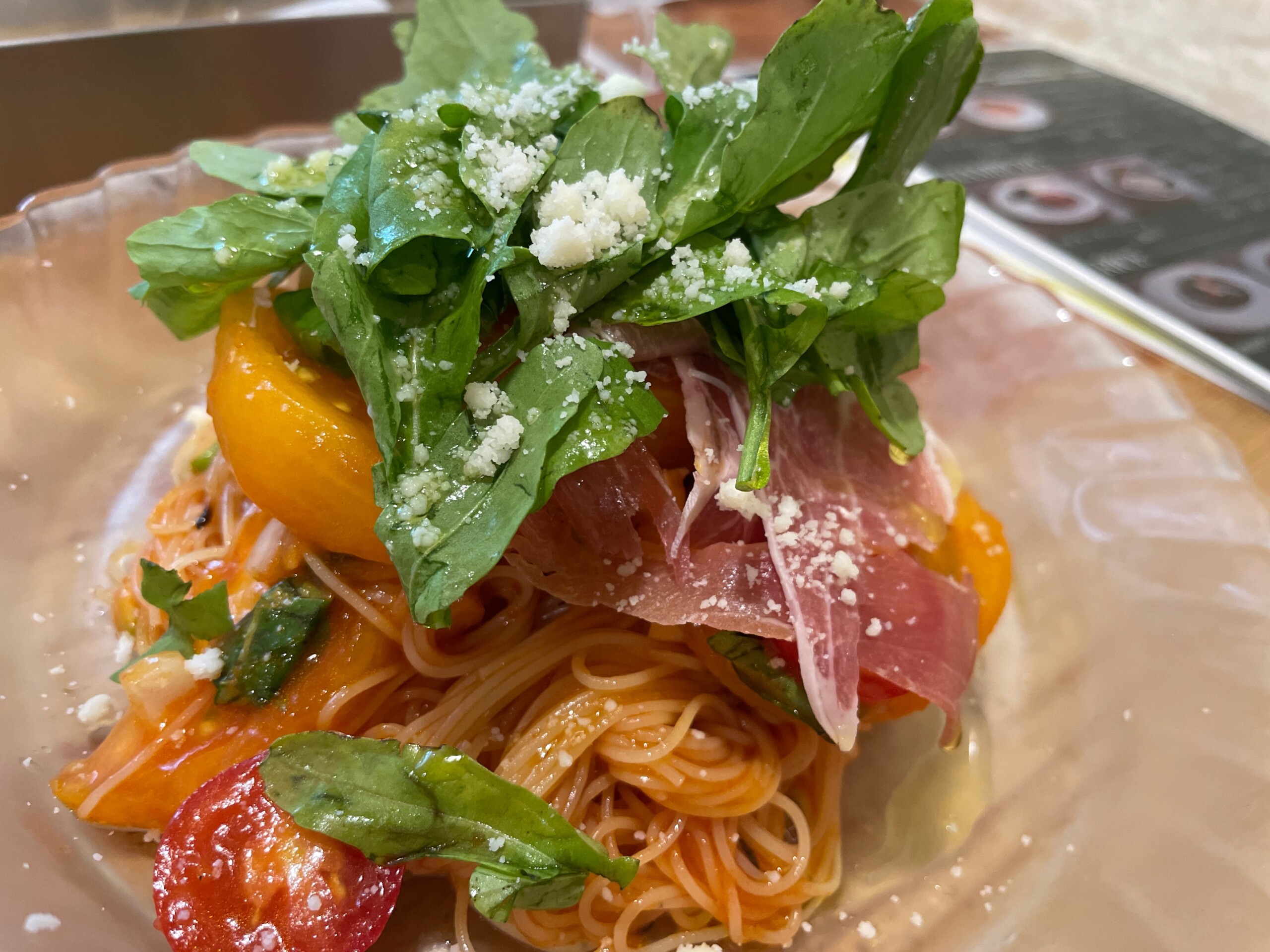 13時30頃 冷製パスタ、サラダ、コンソメスープ