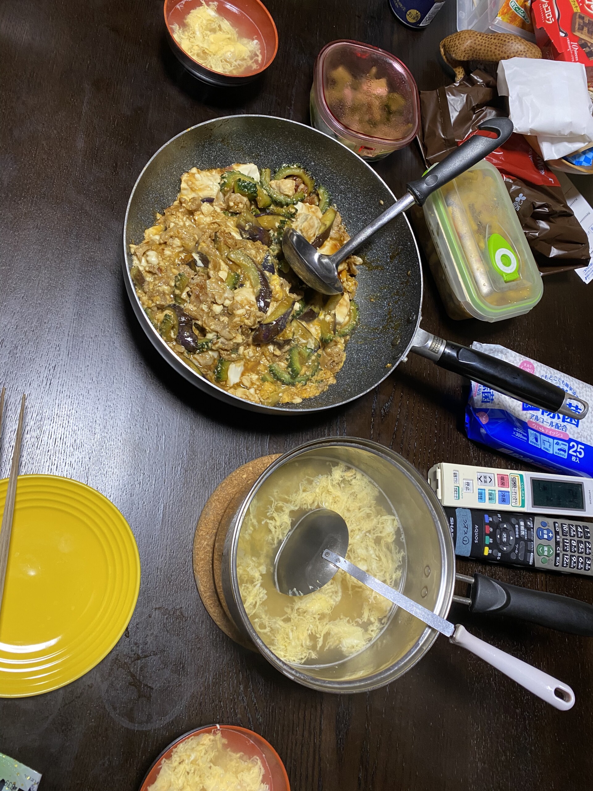 晩20:00ゴーヤチャンプルー、卵のおみそ汁