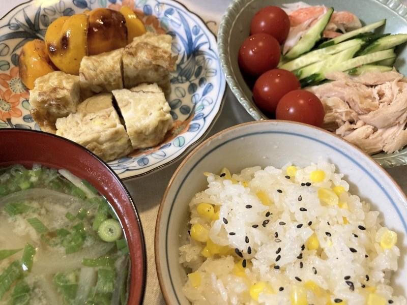19:00 とうきびご飯、みそ汁、