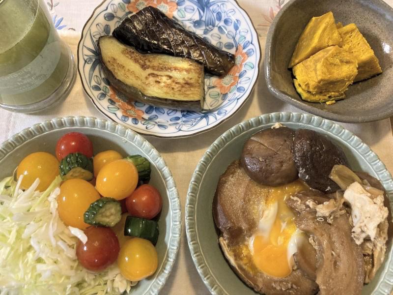19:00 車麩と椎茸の卵とじ、焼きナス、
