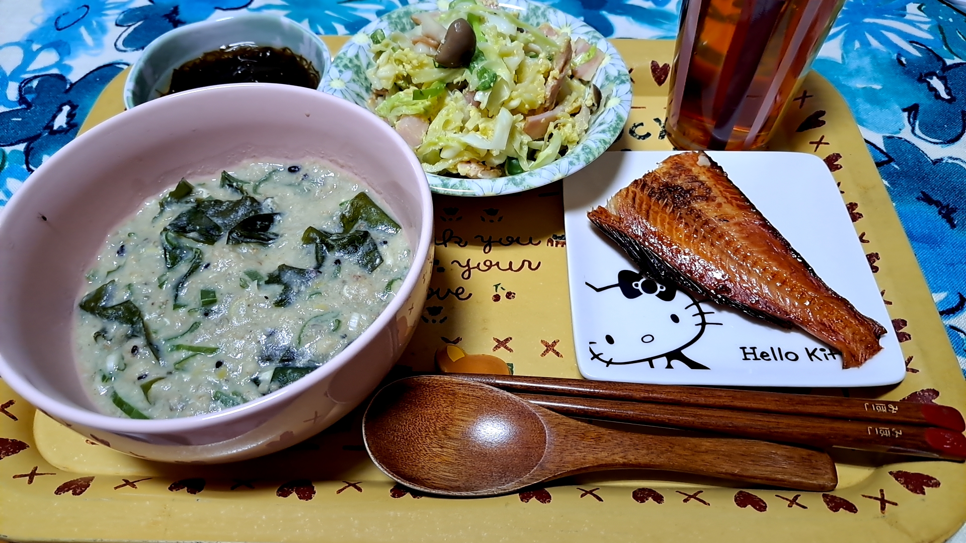 18時50分 オートミール雑炊(ワカメ、卵