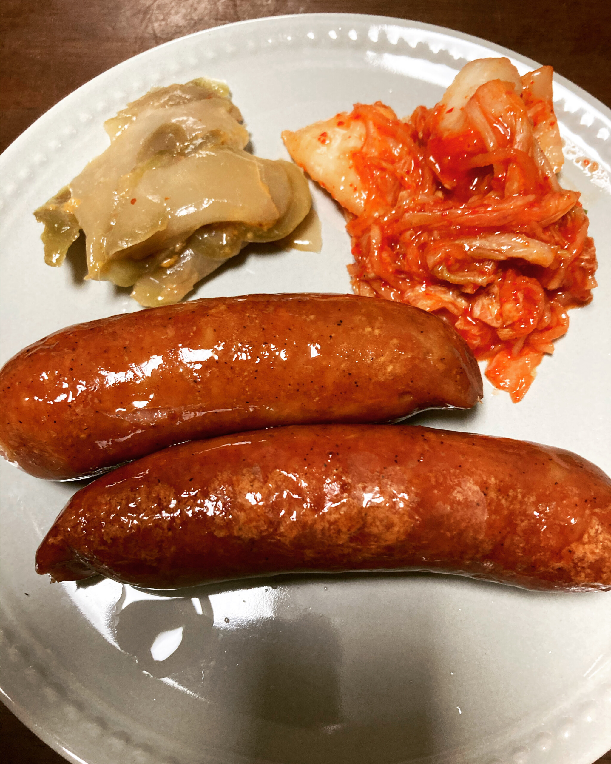 ソーセージ2本、ザーサイ、キムチ、ウーロンハイ2杯