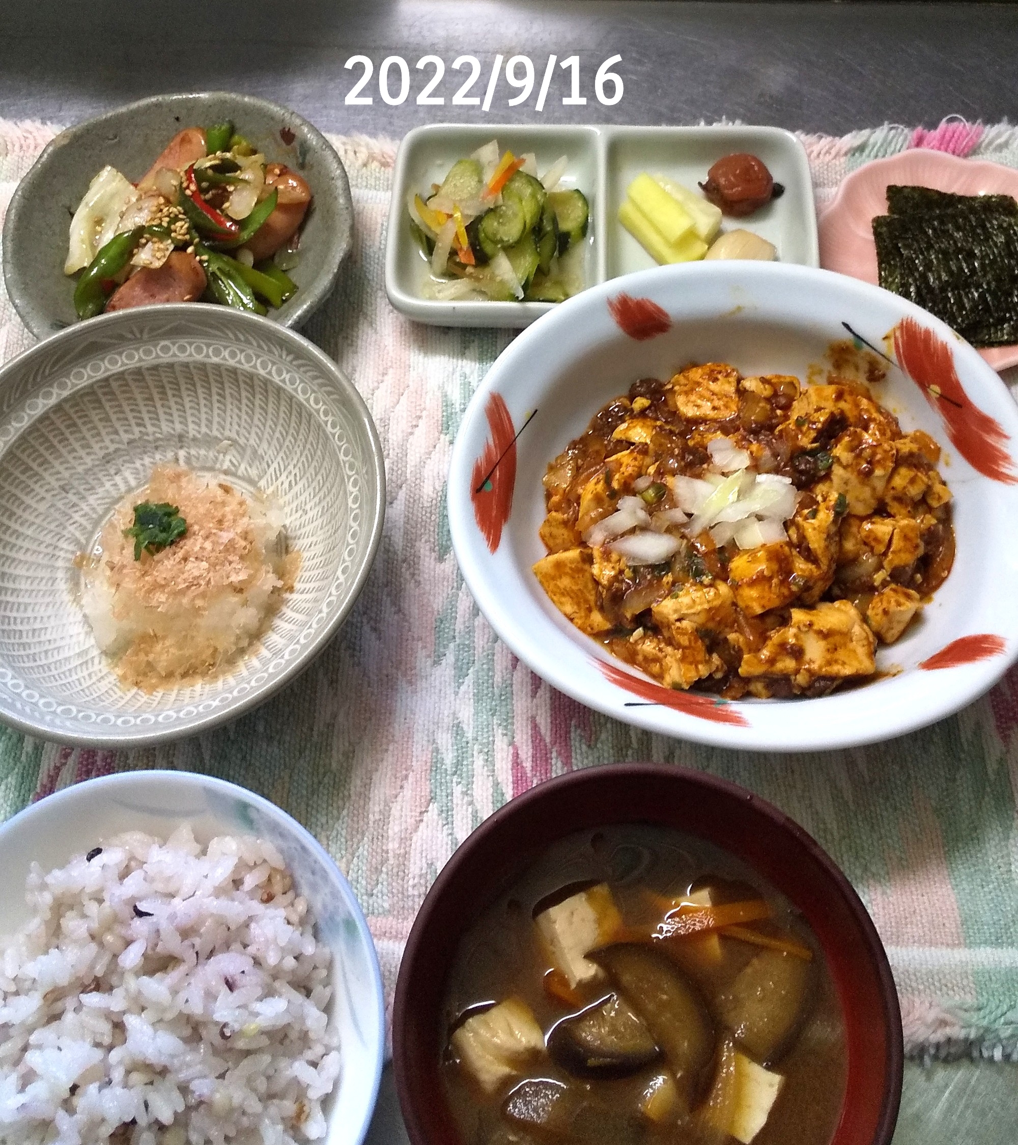 野菜炒め(ウィンナー、ピーマン、玉葱、胡麻)