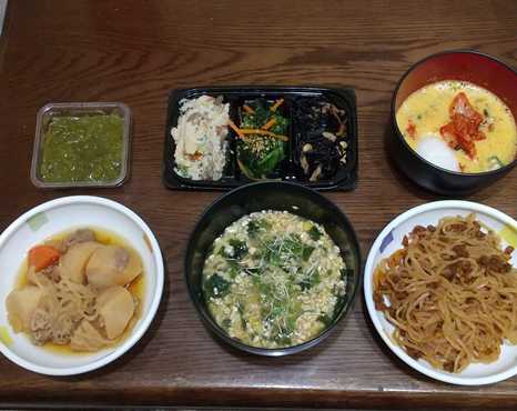 16:00:食物繊維ドリンク×2、サプリ、バナナ、中華スープリゾット風(オートミール)、めかぶ、卯の花、ひじき、ほうれん草の胡麻和え、白滝のカレー炒め(大豆ミート)、肉じゃが