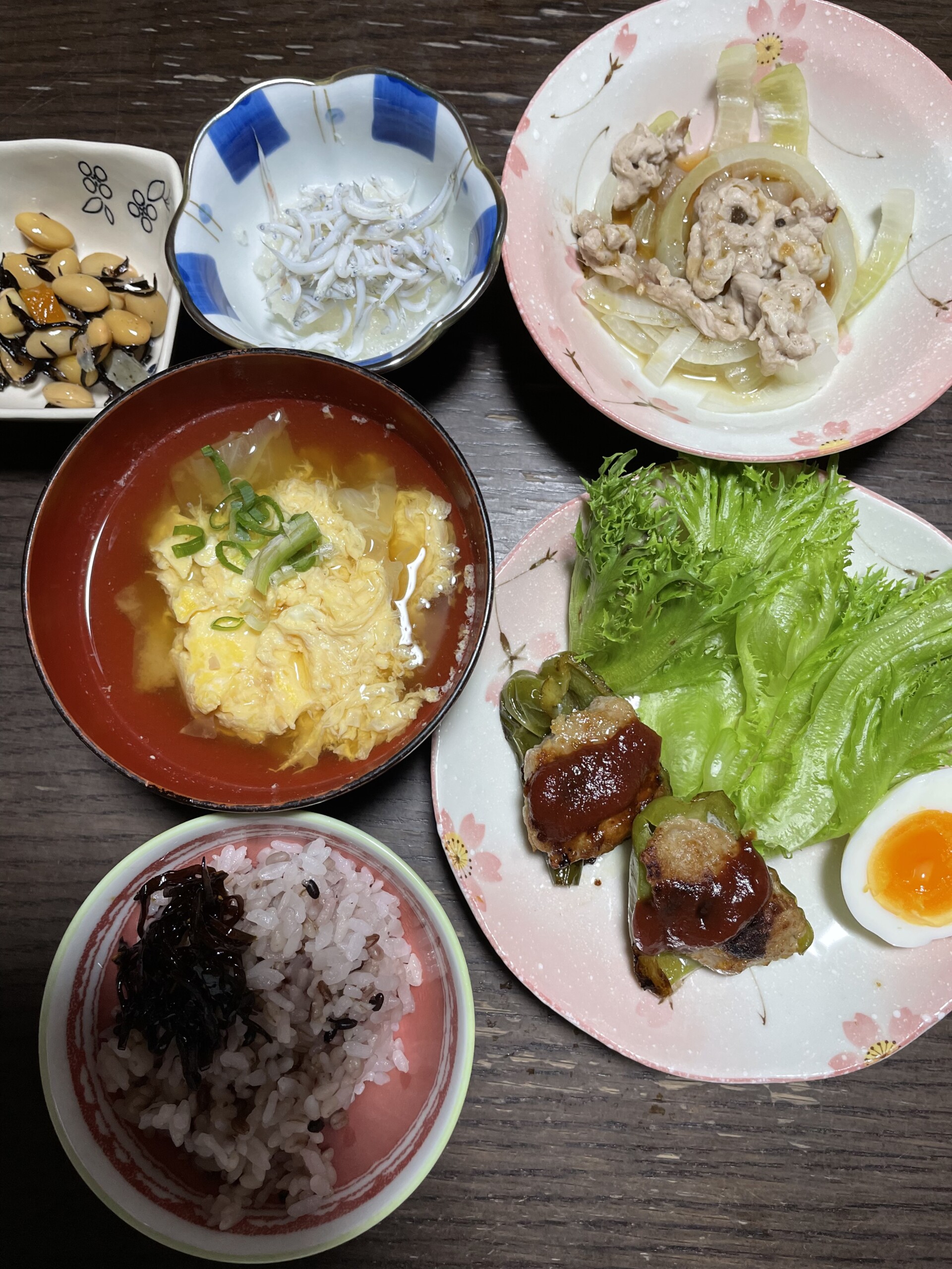 ピーマンの肉詰、ゆで卵