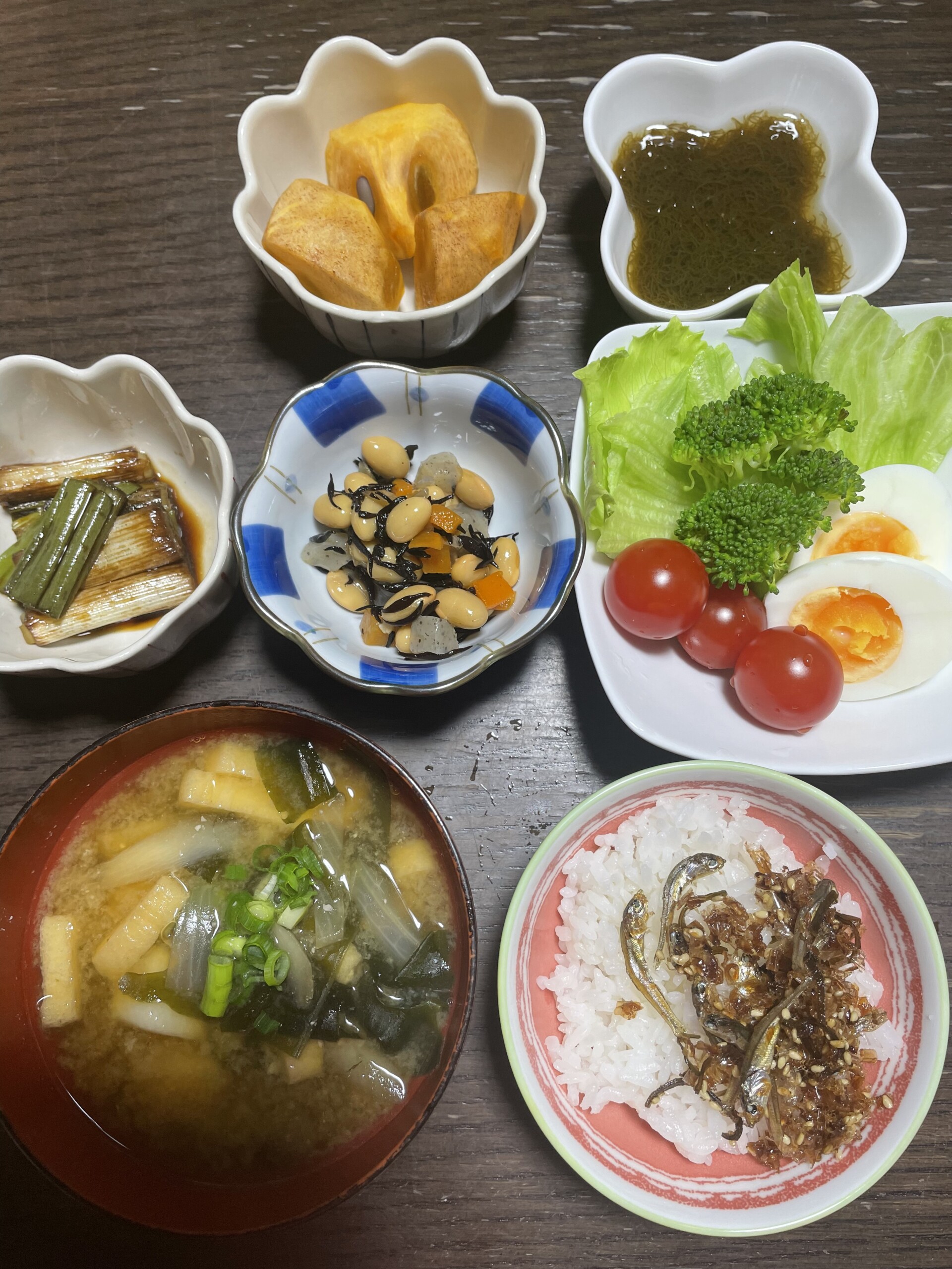 サラダ菜、トマト、ゆで卵、ブロッコリー