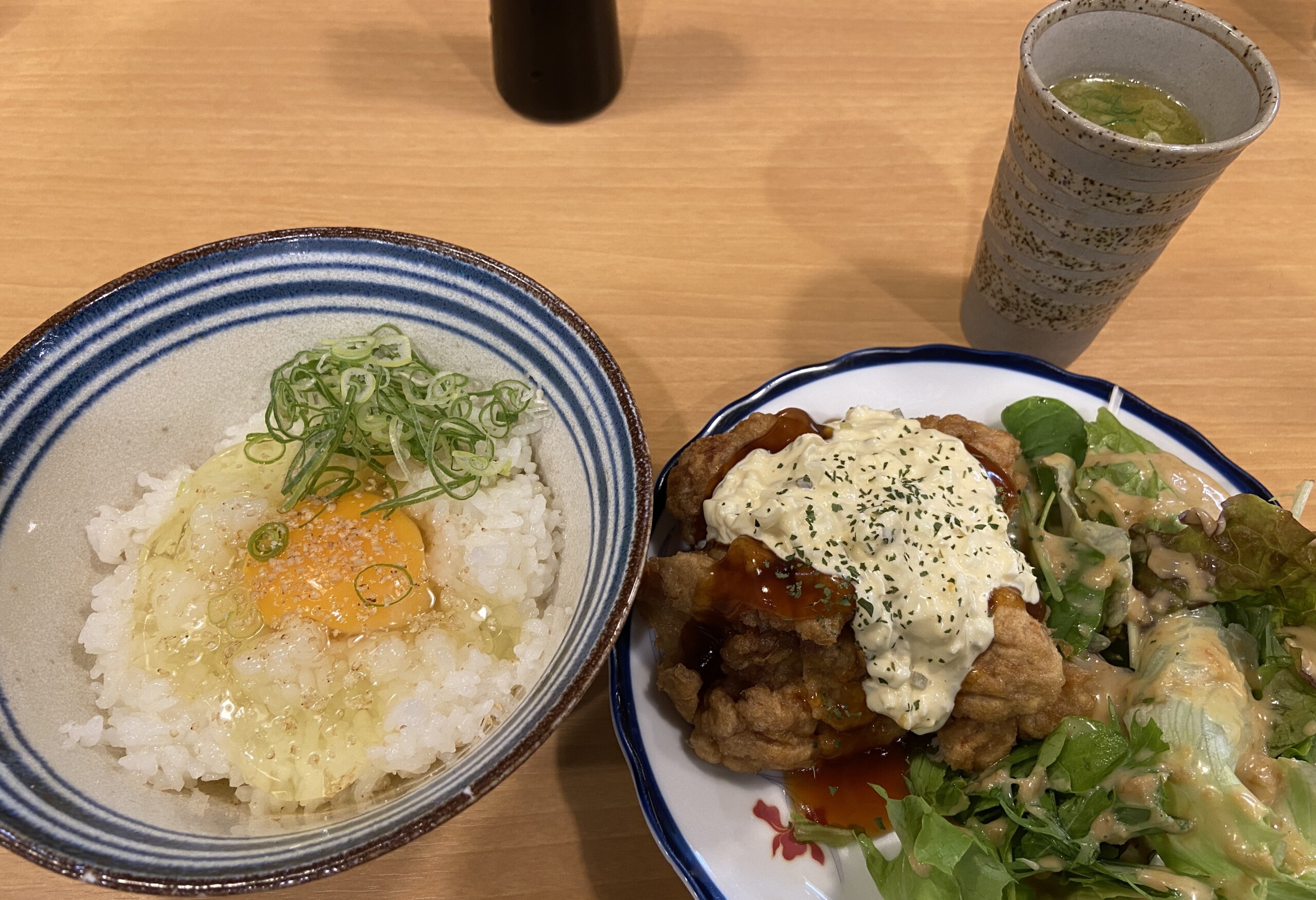 チキン南蛮と卵かけご飯そしてスープをいただきました。