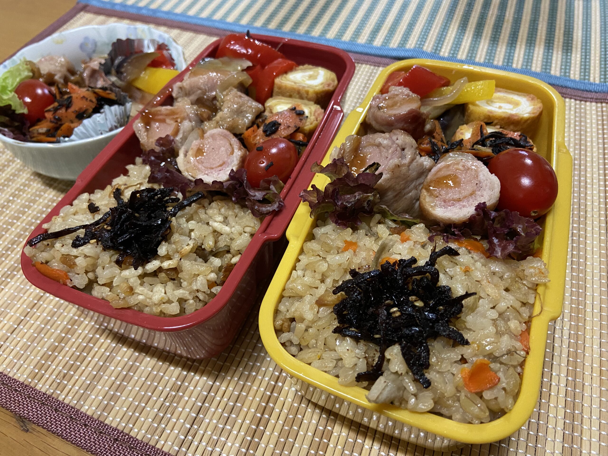 炊き込みご飯(白米、大麦、ごぼう、人参、しめじ、えのき)おかか昆布