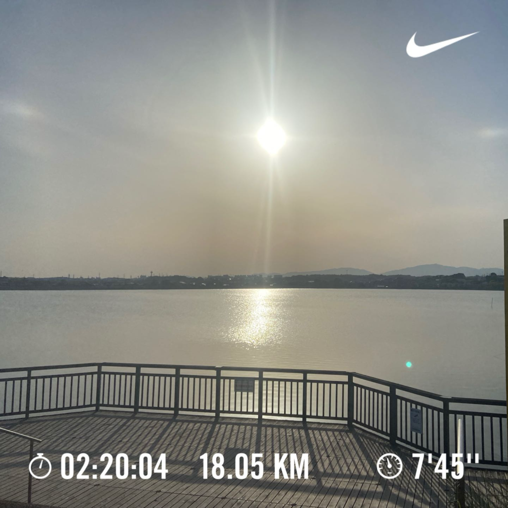 トータル 時間:2時間20分、距離:18km、ペース:キロ7分45秒