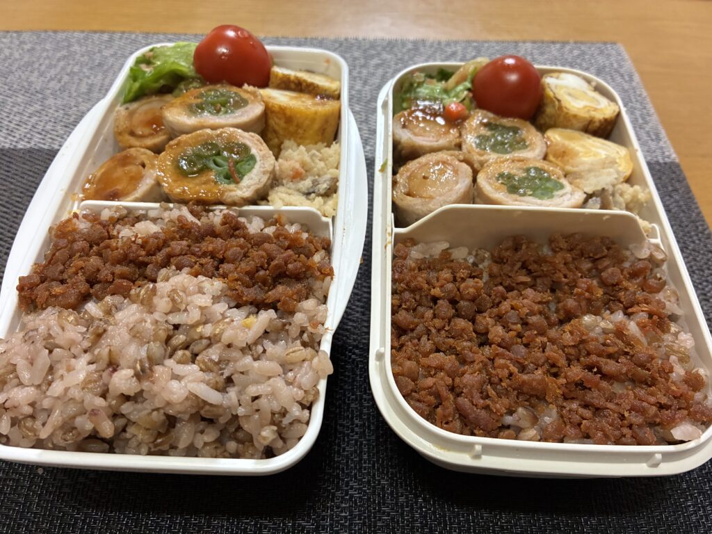 9月29日(月)/いんげんの肉巻き、ウィンナーの肉巻き、十六穀麦ご飯の鶏そぼろご飯など