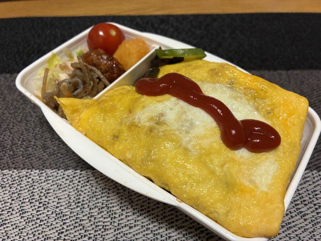 👉 揚げ物とオムレツの組み合わせで、脂質・総カロリーはやや高め。活動量が多い日にはちょうどいいボリューム感です。