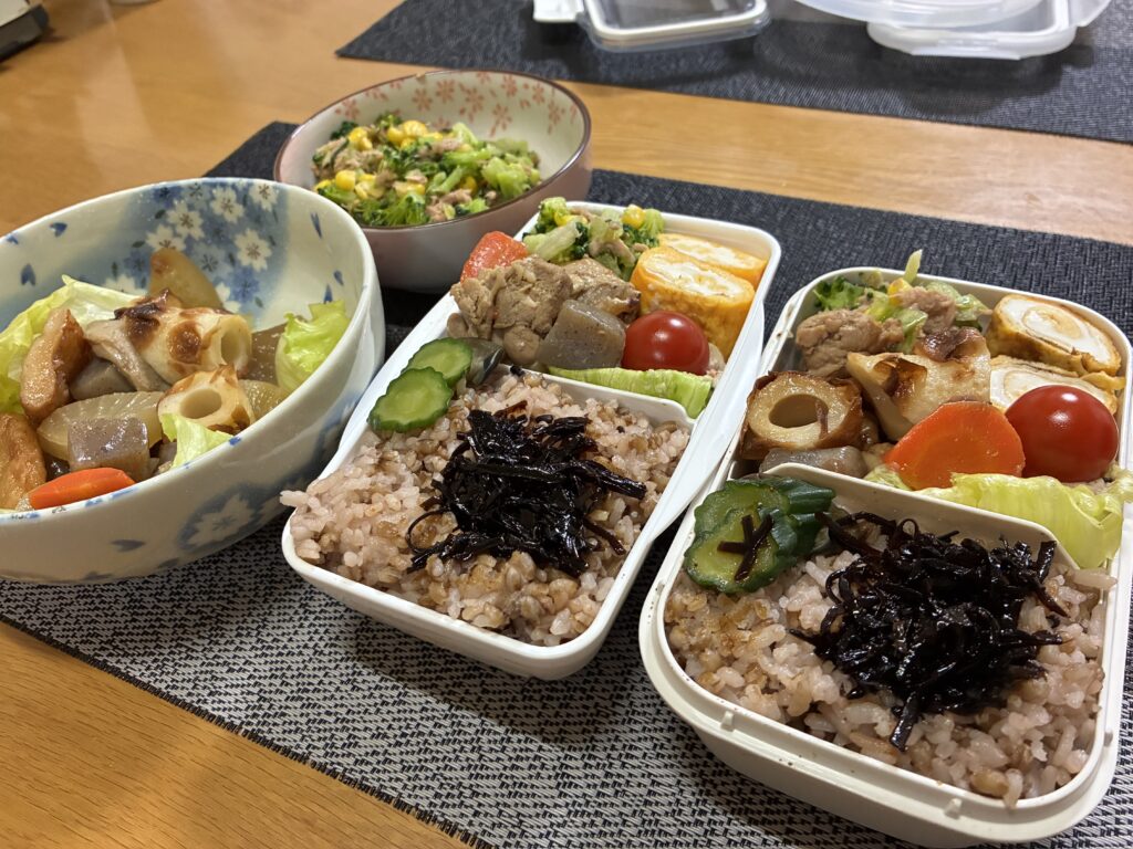 希望があれば、次回この構成をベースに「煮物中心の弁当バリエーション(魚メインや豚肉メイン)」の提案もできますが、どうされますか?