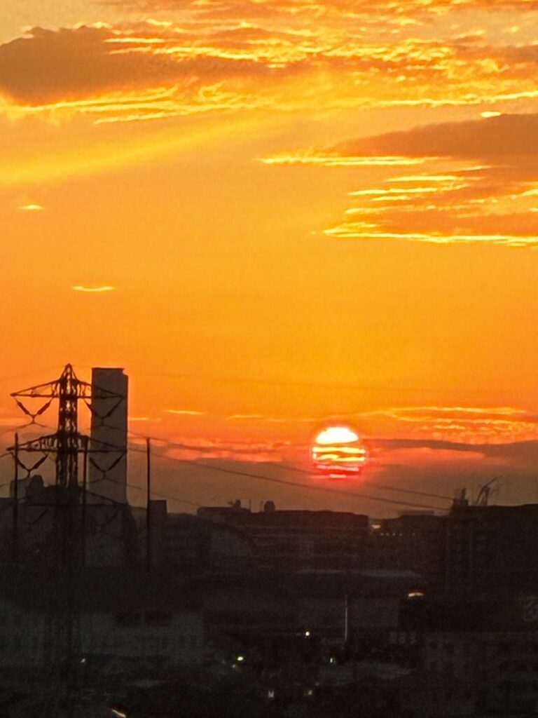 現在の病室は8階のリハビリ病棟です。高いところが苦手な僕ですが、日の出と日の入りが綺麗に見えるところは気に入っています。