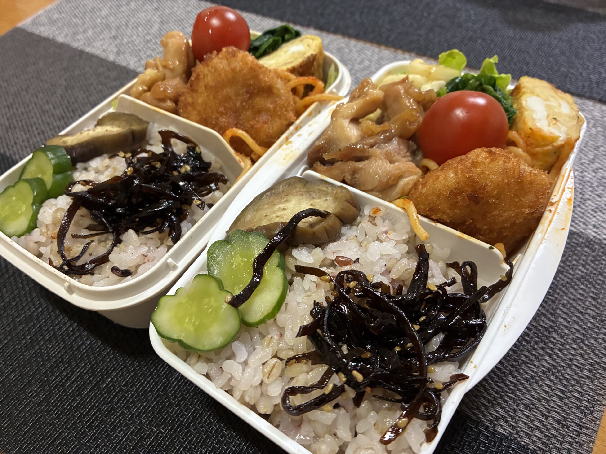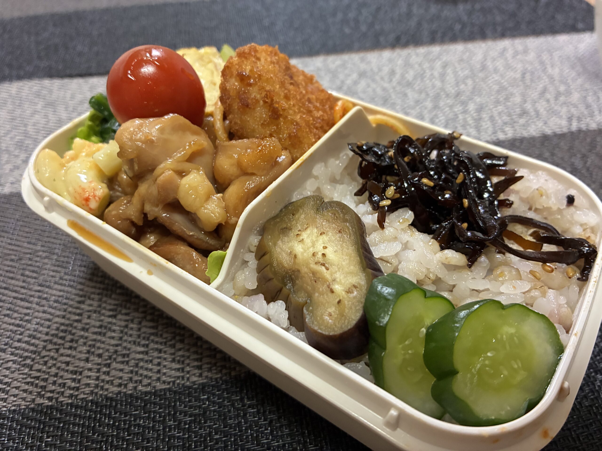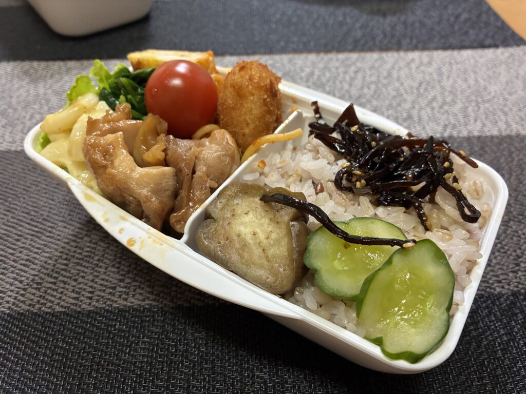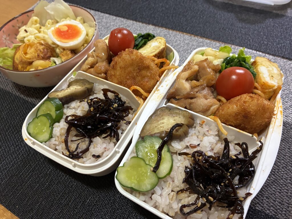 4月14日(火)/照り焼きチキン、チーズ入り卵焼き、マカロニサラダ 弁当日記2026.04.15今日の弁当の内容はこちら十六穀麦ごはん(白米2:大麦1、十六穀米)ふりかけ、ゴマ昆布照り焼きチキン冷食:牛肉コロッケ、ナポリタンチーズ入り卵焼きマカロニサラダ(マカロニ、タマゴ、キュウリ)レタス、プチトマトぬか漬け(ナス、きゅうり)サイトの主なコンテンツラン日記弁当日記ブログ記事プロフィール中沢への連絡はこちら