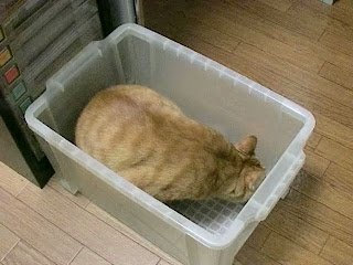 うちの猫たちも、目新しい箱や袋を見つけるとまずは「のぞいてみよう」、そのうち「入ってみよう」、「寝てみよう」といった行動をしますが、この箱も、まずしんちゃん、次にレオンくん、そしてももちゃん、3匹とも様子を伺いに来たけど、落ち着かない場所ってわかったのでしょう。今は誰も寄り付かなくなってます。
