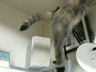 さすがニャンコ、身軽だね ももちゃん 2011.11.102023.11.23 ももちゃん、どうするのそんなところから 3ニャンのなかで一番身軽ですばしっこいのはももちゃん お、ジャンプだ となりの棚に行きたかったんだね。