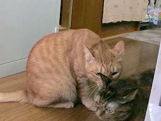 猫たちのよからぬ相談 しんちゃん 2011.11.052023.11.23 背中に視線を感じて振り返ってみると・・ ん?ももちゃん、なにのぞいているの? あれ、しんちゃんも? おまえたち、なにかよからぬ相談しているな。 「戸棚を開けて、おやつ食べちゃおうよ。」