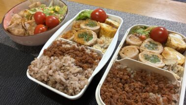 弁当日記 10月2日(木)/親子丼、サツマイモサラダなど 昨日に引き続き、今日も鶏もも肉がメインのおかずです。実は先日の買い物で、鶏もも肉と豚のこま切れを買ったつもりだったのですが……家に帰ってよく見たら、豚こまと思っていたのは切り分けられた鶏もも肉でした( ̄0 ̄;目が悪いと肉をよく間違えます。豚... 2025.10.02 弁当日記