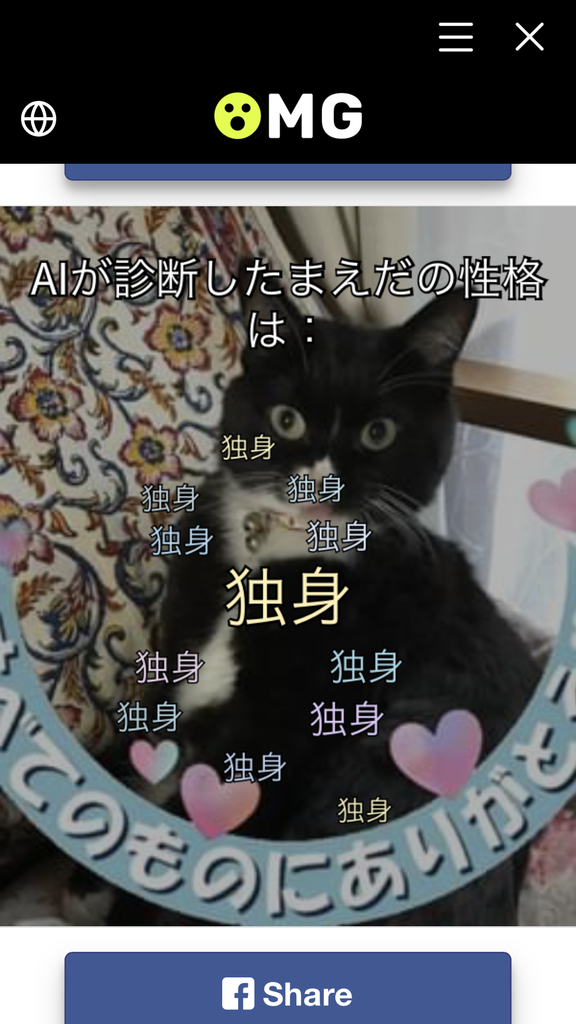 前田美幸さんの写真 お一人様です❣️ 2021.09.10 FBに流れていた性格判断 写真からAIが分析するらしい。 結果、独身.独身.独身… 確かにお一人様ですが? 写真を投稿する 前田美幸さんのオープンサイト投稿 前田美幸さんのゲストサイト投稿 読んだ その他