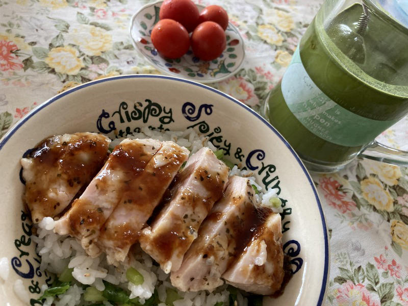 そのとおり!糖質ゼロはチキンのことで、ごはんは糖質ありです!(笑) ちなみに、ごはんには、かぶの塩もみした葉っぱの残りといりごまを混ぜ混ぜしました?