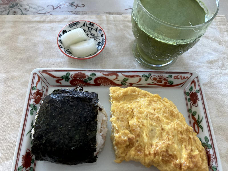 私は1回目もまだなので参考になります。しっかり2人分の備えが素晴らしい〜【青汁におにぎり&卵焼き】流石です。