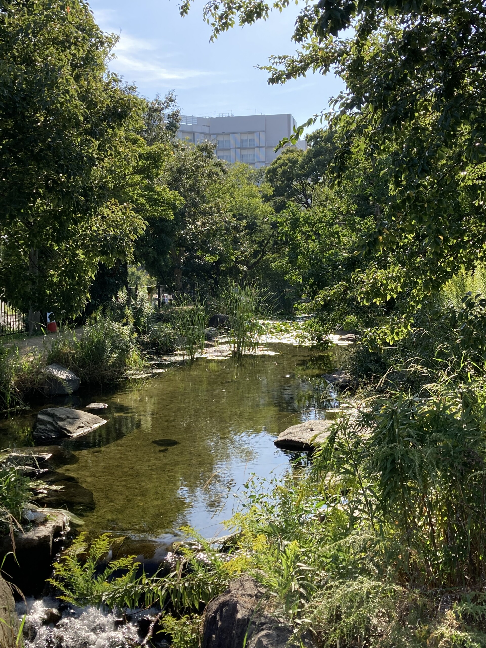 病院の前の公園に人工の川あり なかなかええでぇ〜