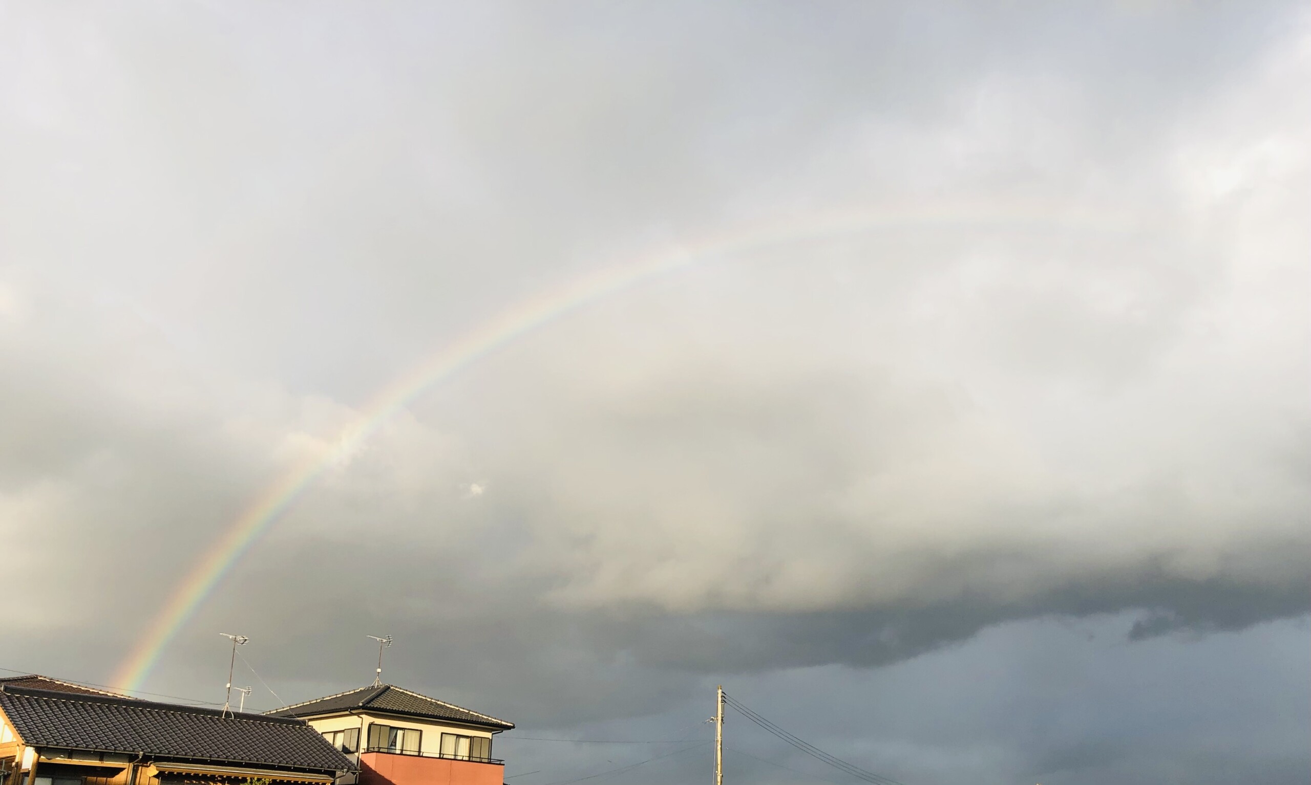昨日の夕方雨が上がり、 外に出たら、虹が出てました?? ——