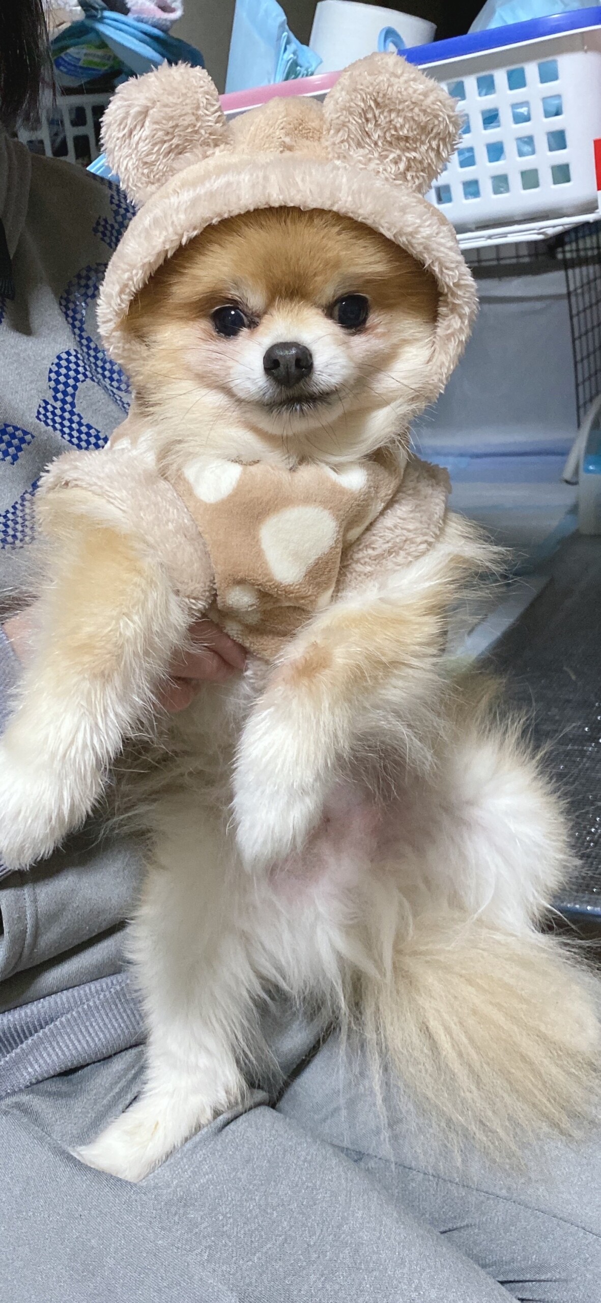 すぐブルブルするから帽子は取れるし脱ぎたいけど脱げない?兄にい早く脱がしてって行ってる最中に抱っこされて写真撮られた?写真撮ったら兄にい満足したらしく脱がせてくれた?