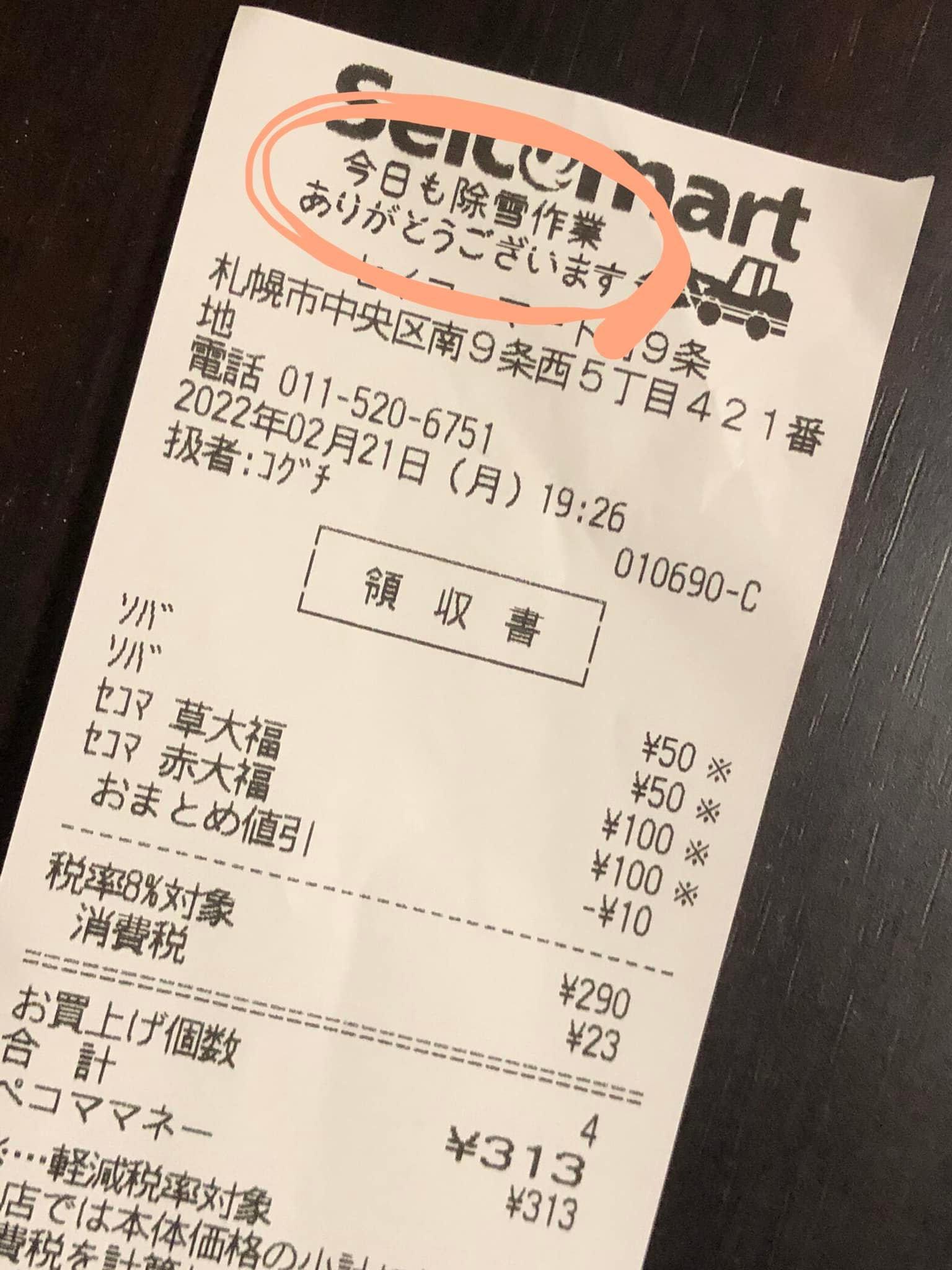 うちの社長が、除排雪業者なくして、セイコーマートの配送は成立しない。災害級の大雪にもかかわらず一生懸命頑張っている業者さんへの感謝の気持ちを大事にしようと話していたそうです(上司から聞きました)
