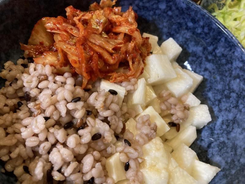 十六穀米を野菜スープで煮たんですね。