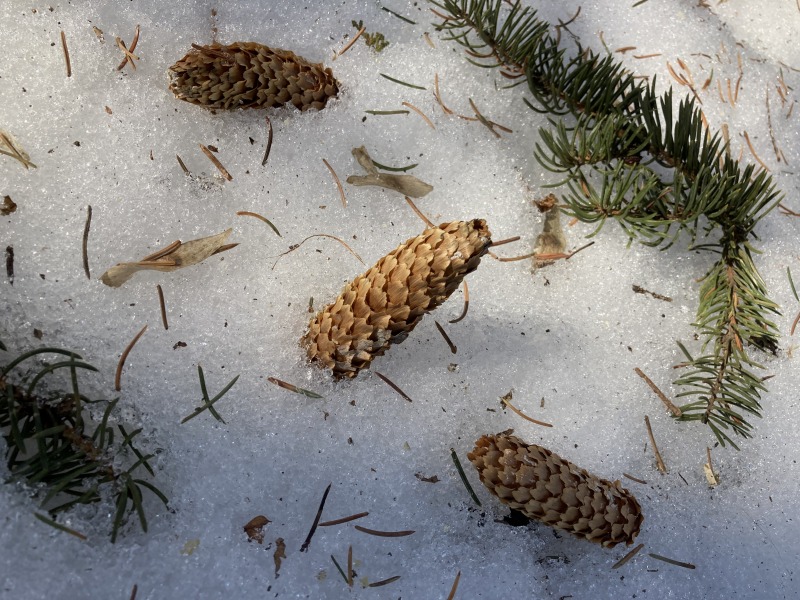 森みちこさんの写真 雪の中から出てくるものは・・・ 2022.03.07 少しずつ雪が溶け 雪山の中から 松ぼっくりや小枝が登場^ ^ 森みちこさんの快適生活倶楽部投稿 森みちこさんのゲストサイト投稿 読んだ その他