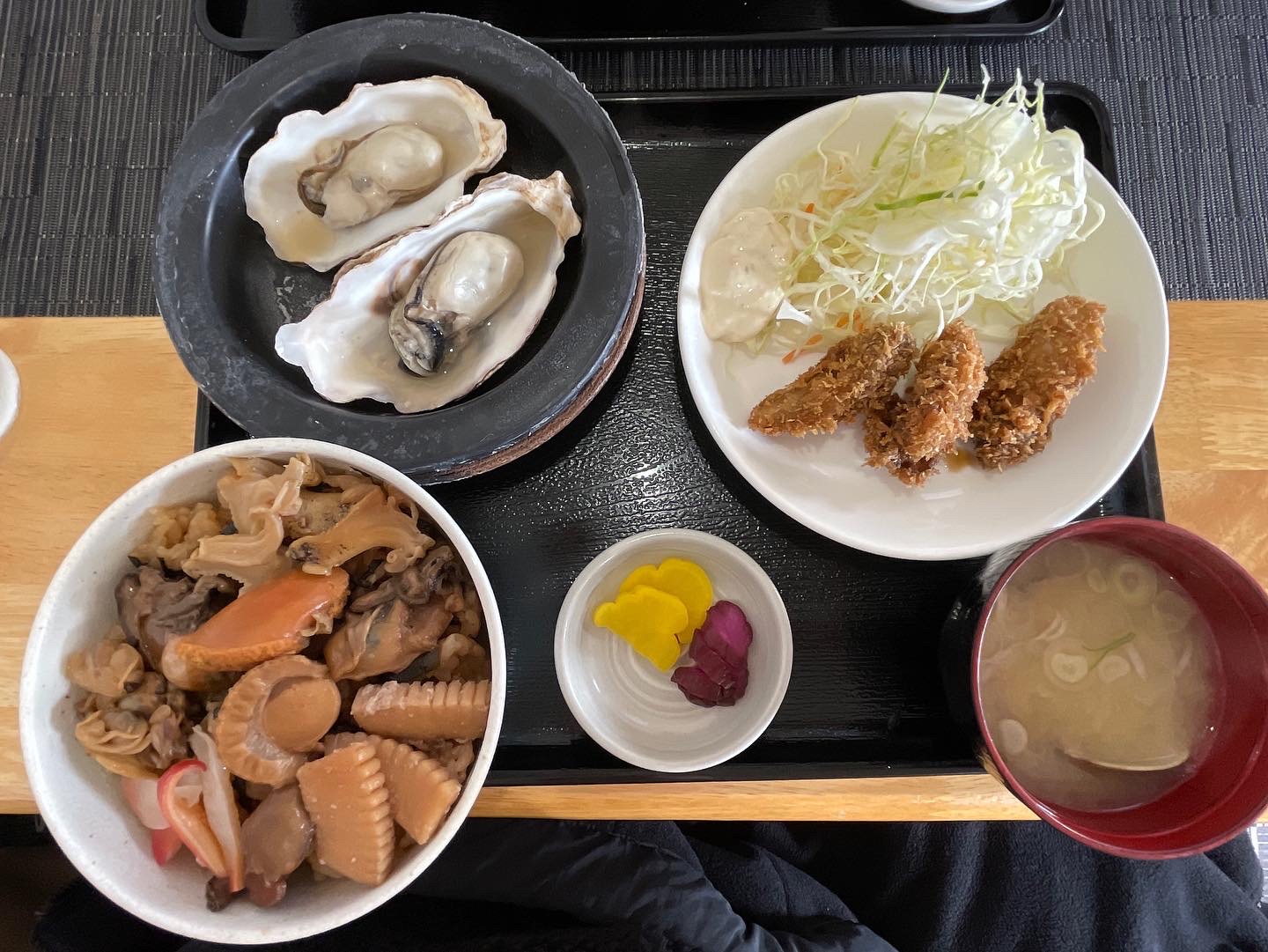 昨日はタイヤがパンクして凹んでたけど友達が厚岸(あっけし)までランチご馳走してくれた?私の大好きなカキフライに蒸し牡蠣牡蠣飯これで1500円って安い?