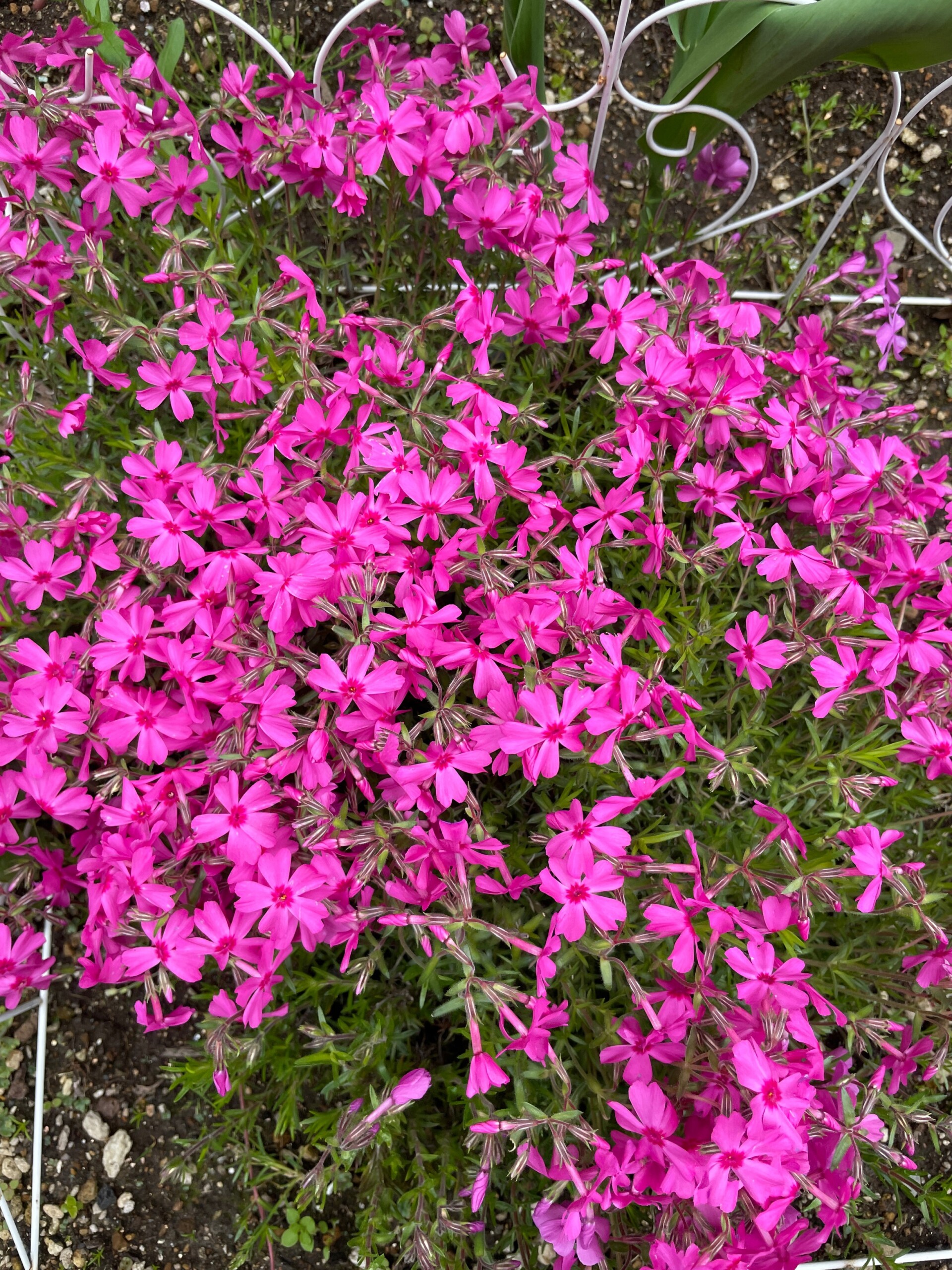 いつもはファンヒーター炊いてるけど今朝は寒くて大きいストーブつけちゃったw 庭の芝桜が満開になったけど雨でしおれないでね💧